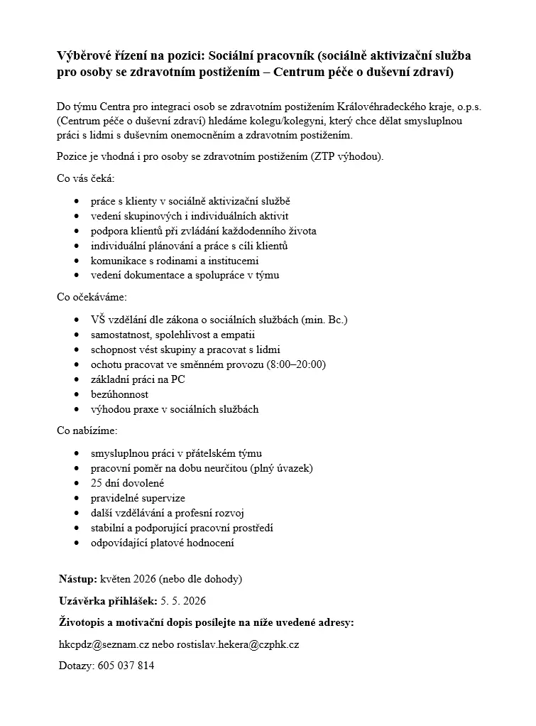 NABÍDKA VOLNÉHO PRACOVNÍHO MÍSTA
